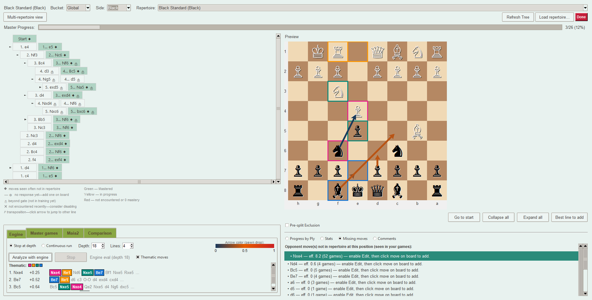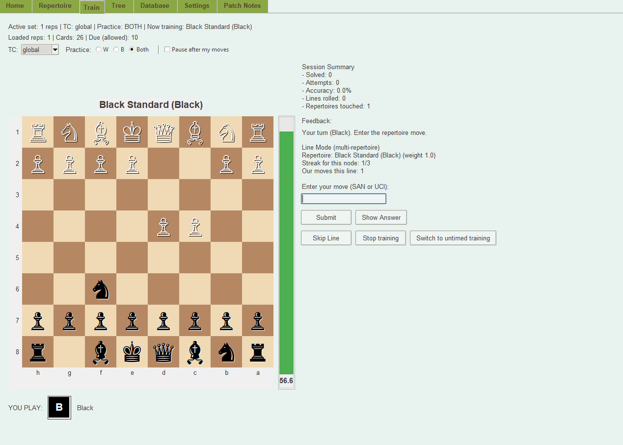- Playing a non-repertoire move in a real game (when imported) also resets the streak.Tree